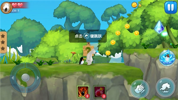 移动:借助屏幕左下角的←与→按钮,来操控倒霉熊进行前后移动。