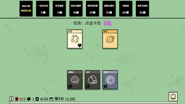 2. 这便是世界探索与生存,以卡片形状取代游戏里的各类物品与道具。