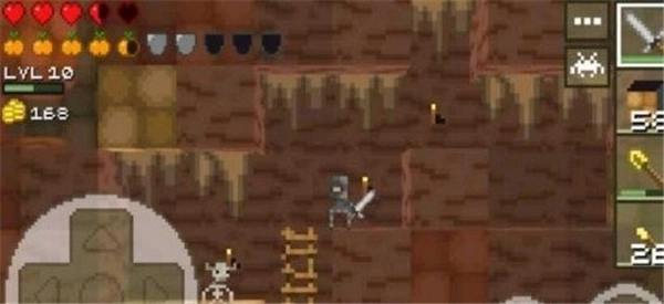 在屏幕的左下角,设置了用于控制移动的虚拟摇杆,依靠它能够达成移动并朝着前方展开探险。而在屏幕右下角,A键的功能是跳跃,连续按下两次A键,就可以实现两段跳。B键所承担的功能是攻击。在整个探险的过程当中,需要借助跳跃、潜水、挖掘等一系列操作,以此来保障自身的安全。