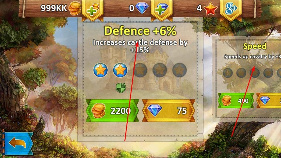 4、当进入升级界面后,可通过消耗金币或者钻石,来提升诸如Defence(防御)、Speed(速度)等属性,以此强化自身实力,为顺利通过后续关卡提供助力。
