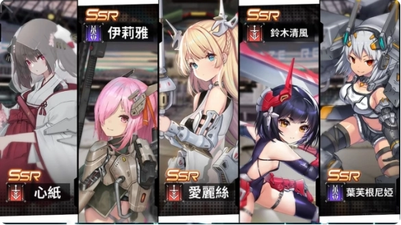 新手进行十连抽操作时,必然会从以下图中展示的五位角色(心纸、伊莉雅、爱丽丝、铃木清风、叶芙根尼娅)里获取到一个SSR角色。