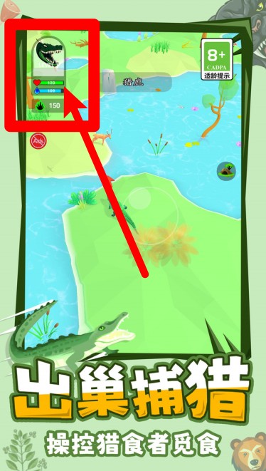 3. 界面左上角展示当前猎食者的状态,涵盖生命值、能量以及食物进度,只有及时补充这些,才能持续发动攻击。