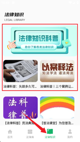 5、借助【法律知识】频道,获取大量的法律科普资料。