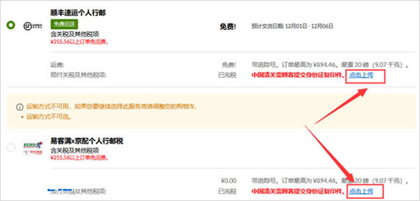 选择物流方式时,可见上图。我们先点击打开新窗口,待付款后,在线直接提交报关。