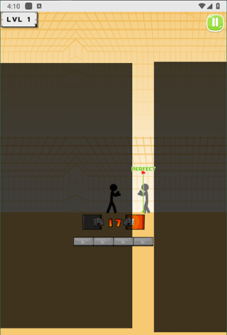 2. 在各个关卡里,你要操控黑色火柴人去击打敌方火柴人。当敌方火柴人进入你的攻击范围时,点击拳头按钮就能发起攻击。