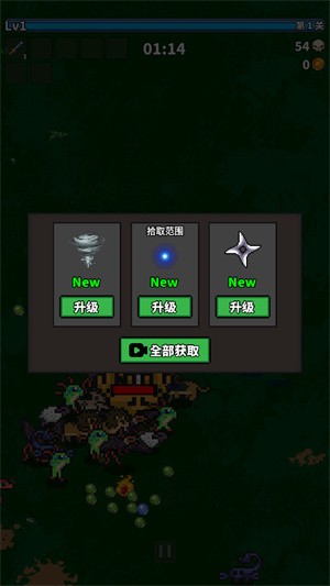 2、技能无需玩家手动操作,会自动释放。每当成功消灭怪物,就会积累经验值,经验值一旦满格,玩家便可挑选新技能。