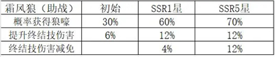 霜风狼作为助战,适配性极高,几乎所有阵容都能派上用场,其70%的发挥较为稳定。在进化至SSR之前,霜风狼的数值提升幅度较大,而进化为SSR后,数值提升幅度变小,因此建议将其升至SSR1星。