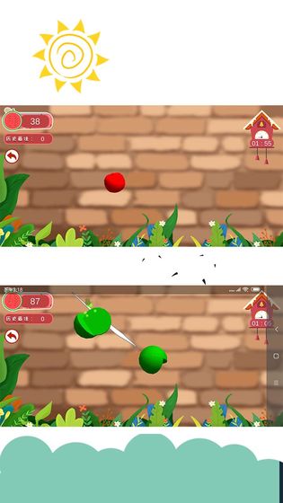 4、图标为苹果的Zen模式中,没有炸弹,只会不断出现水果,时间为1分半。在这一分半内谁因连击而切出的分数越高,谁就是胜利者。游戏不会因水果的掉落而失败。