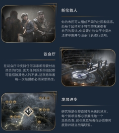 市民们期望能够在城市的管理运营事务上发表自己的见解。各个派系都秉持着独特的意识形态,怀揣着对未来的不同构想,然而它们存在一个共通之处——对权力有着无止境的渴望。你务必在议会厅里审慎挑选盟友。