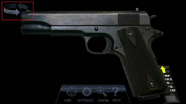 3、位于左上方的循环箭头,其作用是用于切换枪支的角度,当角度改变时,所看到的枪支形态也各不相同。