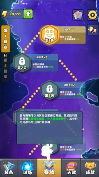1. 设计各类有趣的玩法。能够解锁装备、天赋、场地、成就以及插图。