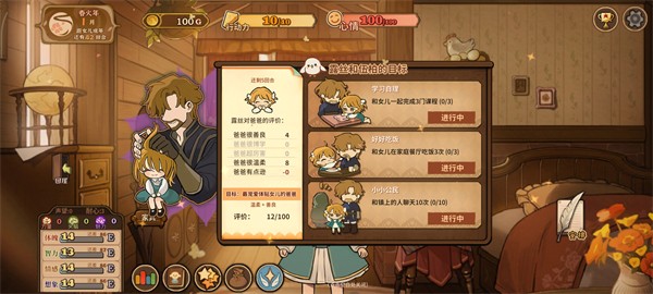 在游戏中,玩家需要通过与镇上人们对话、做出选择,以提高女儿对父亲的评价不同的父亲目标将影响评分标准,请多注意。如果完成得好,将会在六月份的小鸟节上获得奖励哦。