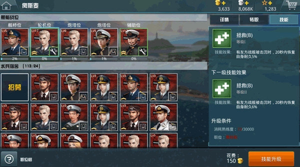 2、除上述加成外,部分水兵还拥有类似特殊技能的能力。以“拯救”这一特殊技能为例,其特殊效果为:当我方舰船被敌方击沉时,通过拯救我方落水的友方水兵,自身血量会得到少量提升。
