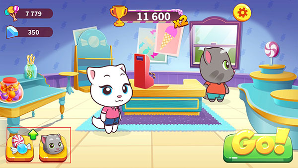 6、在游戏主界面,左下角的糖果按钮是随机道具,猫头按钮则是更换角色。