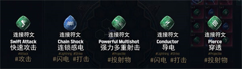2、技能符文所指代的是游戏里的一些关键技能,像闪电、投射物以及弓箭等。