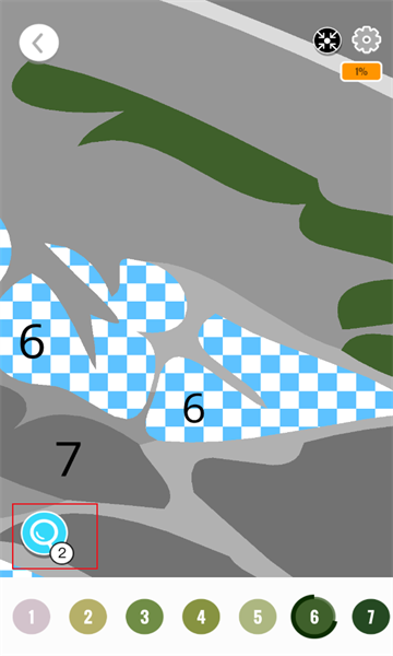 1、根据数字找到正确的色块来填涂,可以开启放大镜帮助自己找寻正确的颜色。