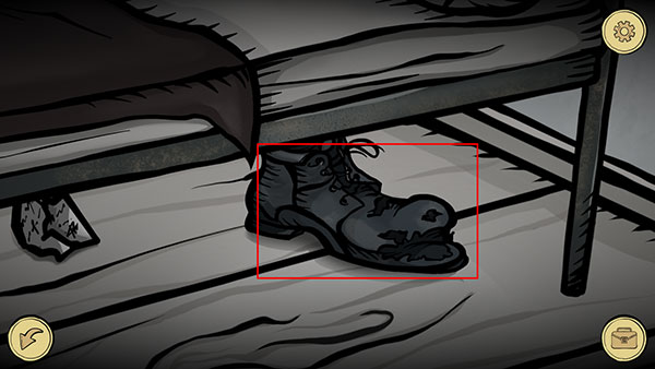 3、然后发现床底下有只【旧靴子】,点击拾取;