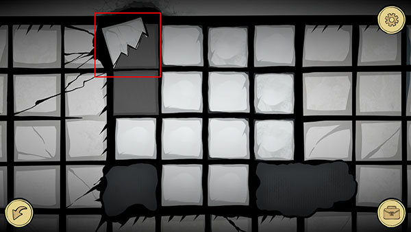 6、用旧靴子将左上角的灰抹去,点击白色砖块可以移动位置,将下面的碎砖块移动至左上角破碎处,得到【碎砖块】;