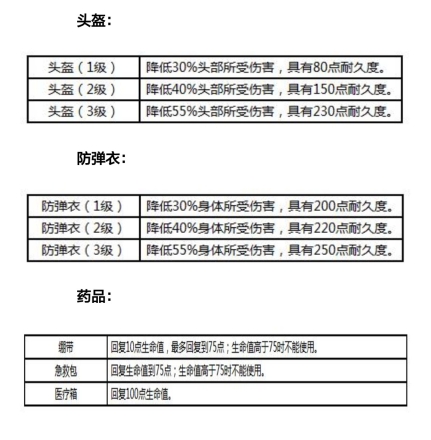 最后附上武器装备性能表,方便大家捡装备时参考~