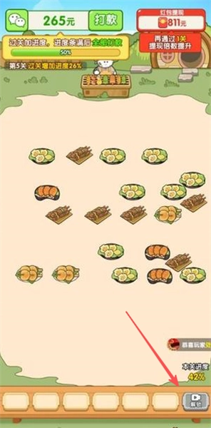 3、点击选择上层可移动的食材,把它移至右侧烤盘以实现消除,从而为下层食材腾出空间。
