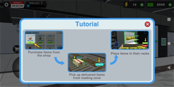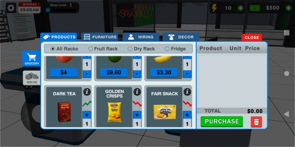 4.接下来,玩家能够借助电脑订购各类商品,你得把这些商品摆放在商店的货架上,以此吸引顾客前来购物。
