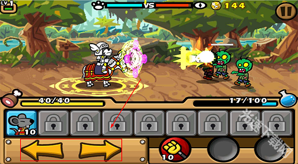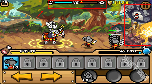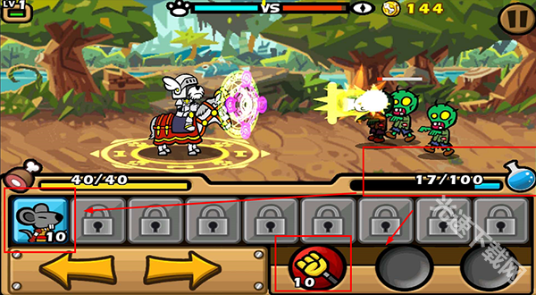 蓝色能量瓶能够用来召唤动物佣兵以及发动魔法攻击,在佣兵和攻击旁边的数字代表着所需消耗的能量。