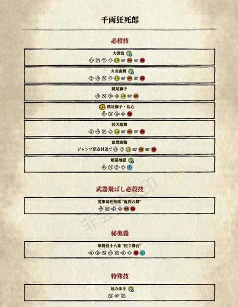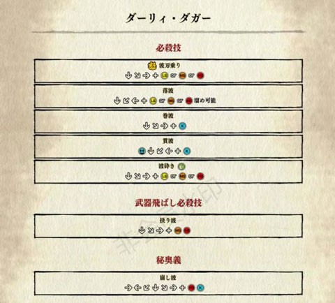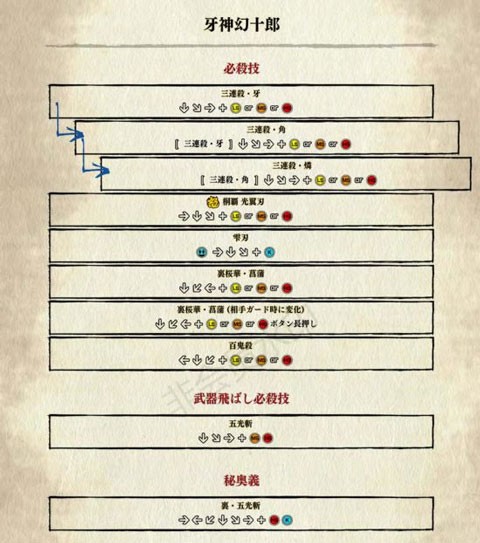 夺白刃:在空手状态时,操作指令为 ↓↘→+弱斩+中斩