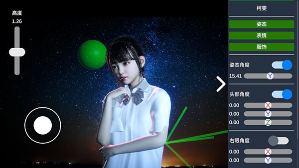 3、以右侧的“模特”为例,小编可以对其姿态、表情及服饰进行调整。