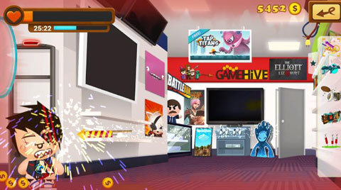 1. 游戏玩法极其简单。挑选你想用的工具,朝着老板扔过去,将他打倒。游戏里存在大量的游戏技巧以及众多可供选择的工具,大伙可得兴奋起来呀!