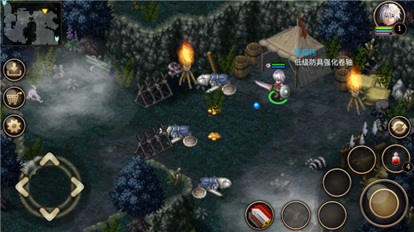 3、靠近怪物后按下行动键,角色便会自动投入战斗,此时还能够点击技能图标来释放技能。