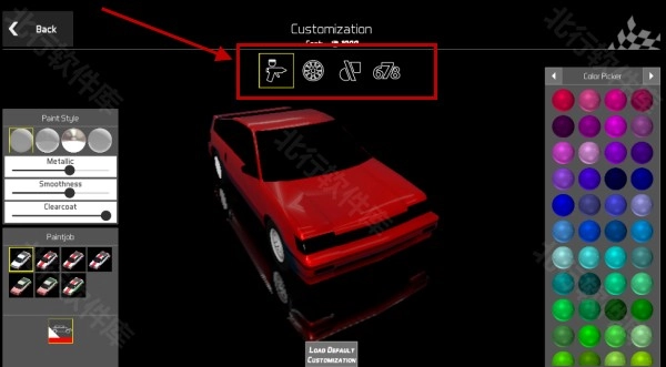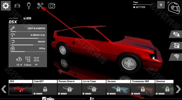 1、返回游戏主界面后,点击屏幕左上角的第四个按钮,即可进入改装界面。
