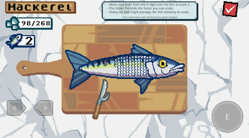 海上餐厅刮鱼鳞是一款融合了模拟经营、休闲钓鱼与料理制作的像素风格。玩家扮演一位海上餐厅的老板,需通过垂钓获取新鲜鱼类食材,亲手处理鱼鳞并烹饪美食,招待形形色色的顾客,逐步将餐厅经营壮大。游戏以轻松治愈的像素画风、趣味十足的刮鱼鳞玩法,以及从食材获取到烹饪的全流程经营体验为核心特色,适合喜欢休闲模拟与策略管理的玩家,玩家在船只左侧的钓鱼台点击互动键开始垂钓,鱼钩自动下沉后,通过左右方向键控制鱼钩移动,触碰鱼类即可将其钓起,不同等级的鱼钩影响水下持续时间与成功率,升级鱼钩可解锁更深海域,捕获稀有鱼类,并且完成新手教程与日常任务可快速熟悉游戏规则,解锁成就奖励哦!