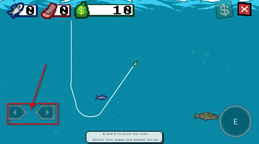 4.然后还是控制方向键控制钓钩的方向,捕获鱼儿。