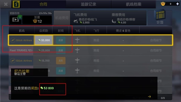 3、玩家签订合同之前合一看到和航空公司合作的预期收益。