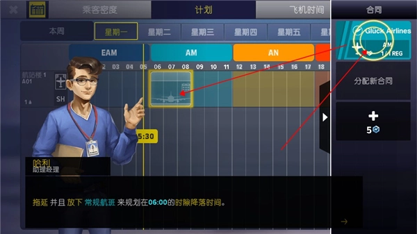 5、玩家合同签订完成之后就需要制定一个详细的飞行计划,保证飞机每天都能出航班。