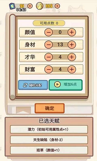 这是一款以文字剧情为主的角色扮演游戏,核心玩法围绕着与虚拟角色的互动展开。游戏开始时,玩家需要从多个天赋选项中挑选三项,并对角色的各项属性进行分配——既可以手动调整,也能选择随机生成,这些初始选择将对后续的故事走向产生关键影响,建议玩家慎重决定。