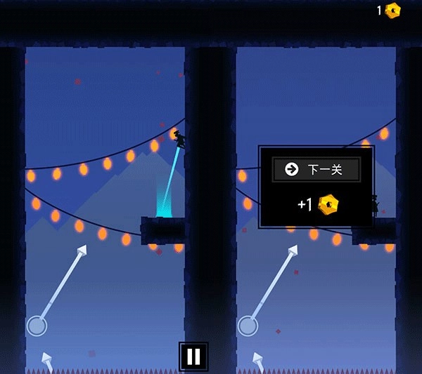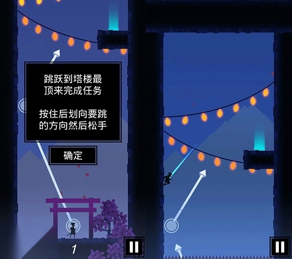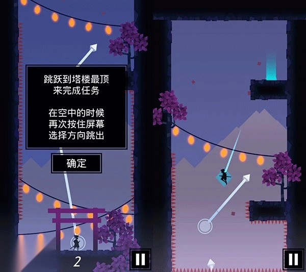 2、当忍者在空中的时候,再次按住屏幕,然后可以再次向你选择的方向跳出,相当于是多段跳的意思。