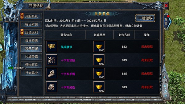 1、开服活动有大量奖励可领取