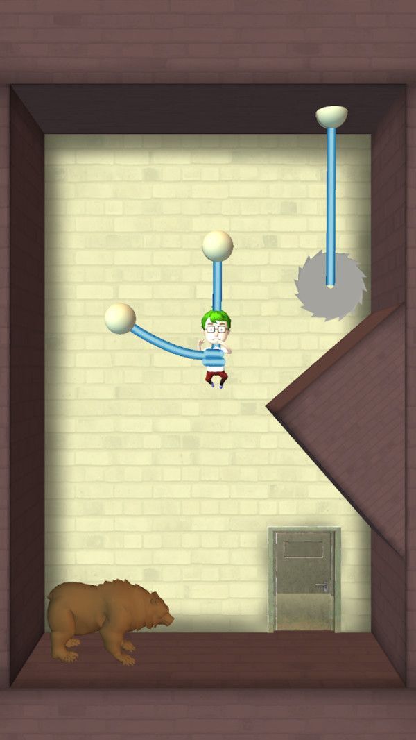 3、不清楚是怎么被那根绳子绊住的,玩家得运用一些道具和技巧,把他毫发无损地救下来。