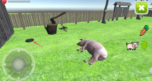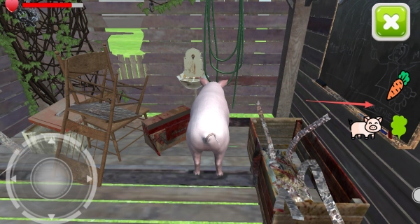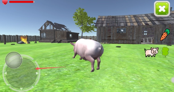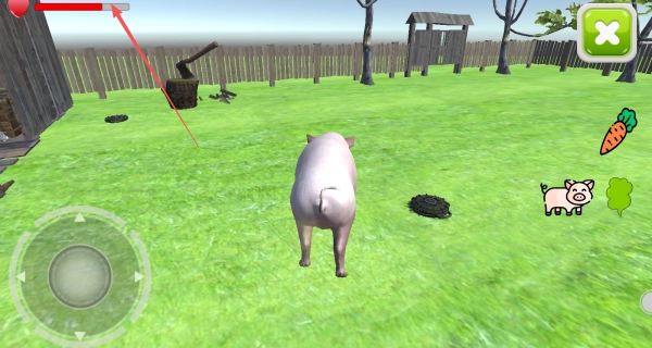 1进入游戏后,点击左侧按钮操控猪猪移动,在猪舍、户外等不同场景里开启专属于你的冒险之旅。