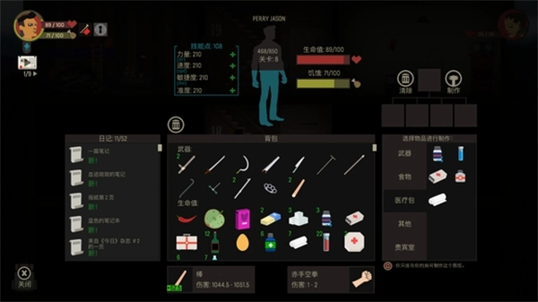 3、随机生成地图、获取经验、制作武器并寻找有用的物品。