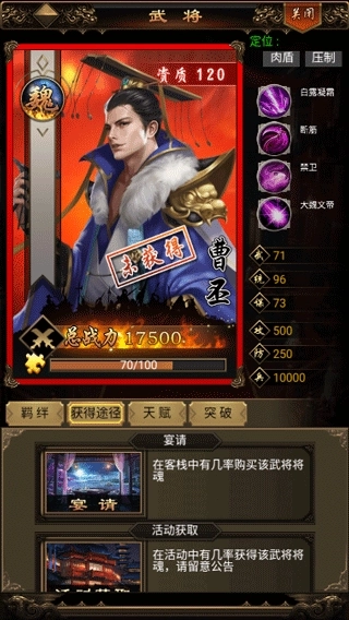 3后续登场的武将都需要精心培育,此外还有专属的福利活动,能助力你的武将快速提升至顶级状态。