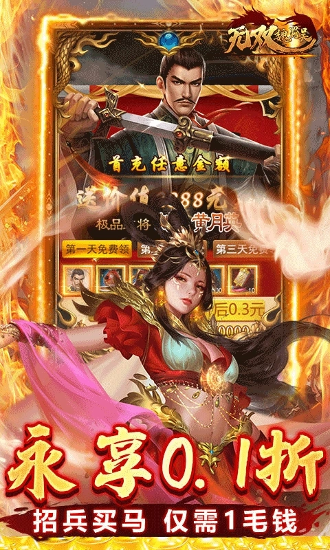 ★新手福利礼包1分钱就能拿下,极品红将与极品红颜都能轻松收入囊中!