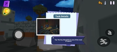 4、左上角的书籍表示本章任务,目标是寻找隐藏的钥匙并逃离此地,灯泡图标提供提示,通过观看广告可以获得额外线索。