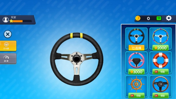 2.点击游戏主界面画面左下的“自定义”,可以在这里解锁不同的方向盘皮肤。