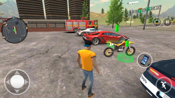 5.如下图,在开放世界模式中, 控制角色行动去选择喜欢的载具,包括了消防车、跑车、摩托等等,驾驶载具在城市中自由探索吧!