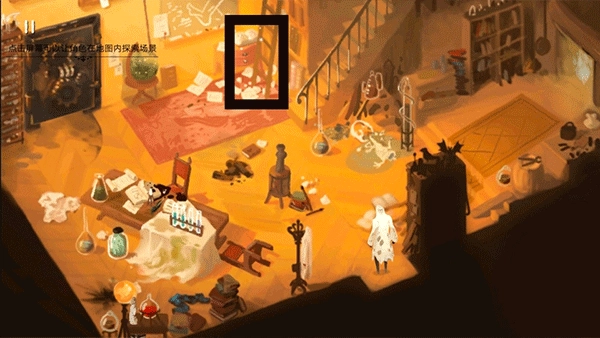 5、开启后进入内部,拿起小吊灯并持续向上行进,就能抵达下一个场景密室;到达密室后记得在两个窗口处开灯