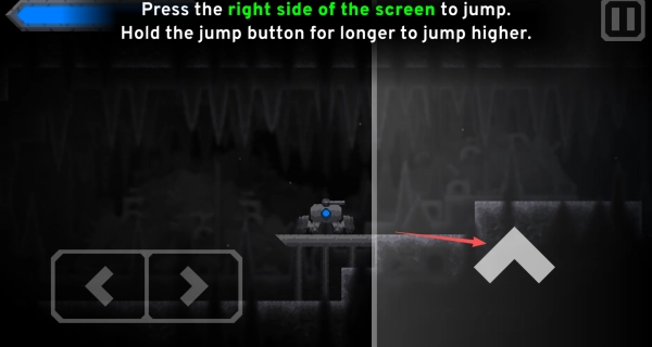 2、点击屏幕右侧区域触发跳跃,若需跨越较高平台,可长按跳跃区域延长跳跃时长,以此调整跳跃高度,顺利到达目标位置。