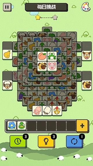 1、点击将3个相同的方块匹配到一起即可消除,当场上所有方块被消除,就算过关啦!