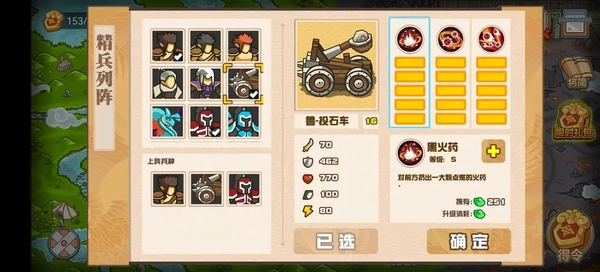选中的兵种从左到右分别是刀斧手、投石车、遁甲兵